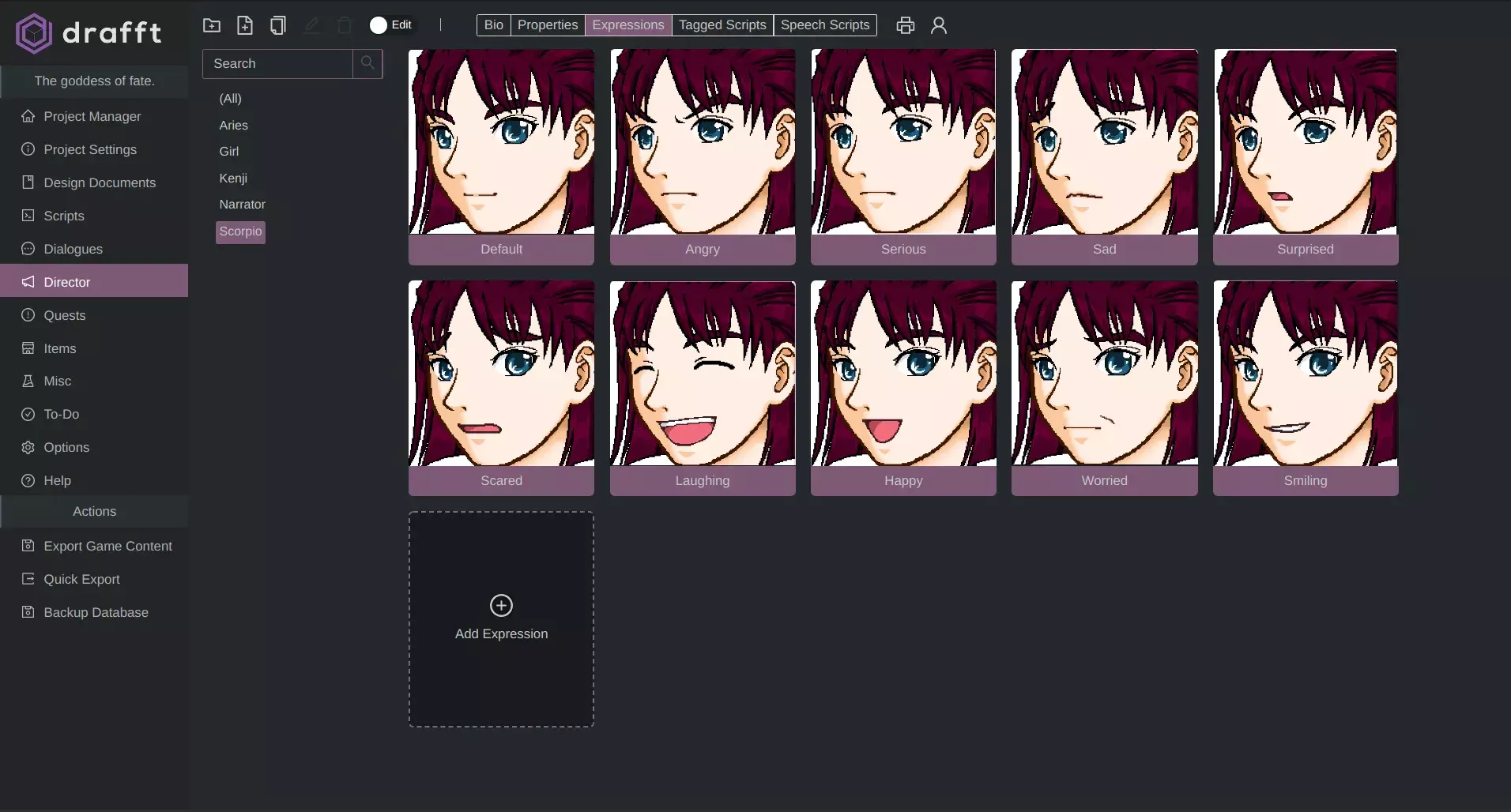 Drafft是一款精致高效的游戏开发工具,减少文件杂乱无章的问题,并为游戏开发过程的各个方面提供一个集中化管理中心。它包含了游戏设计文档(GDD)编辑器、脚本编辑器、非线性分支对话树编辑器等主要功能,支持将游戏数据以纯JSON格式导出,适用于任何引擎。Drafft允许用户在评估模式下无限期使用所有功能,如果用户对其满意,可以购买完整版来支持未来的开发。它的设计包括了中央存储库、协作平台、引擎无关性和美观的用户界面等特点,使得创建游戏设计文档、脚本和对话编辑既高效又富有创造性。此外,Drafft自2020年起持续开发,根据社区反馈进行更新,以提高软件稳定性并增加新功能。软件当前处于测试阶段,建议用户定期备份数据以防丢失。更多信息和示例项目可在Drafft的官方文档网站找到。