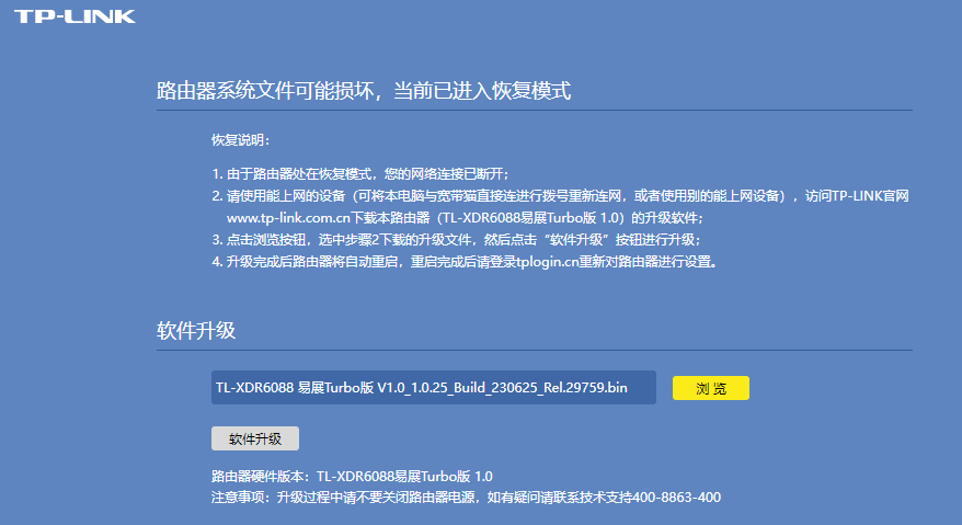 打开此链接下载:TL-XDR6088易展Turbo版 V1.0升级软件20230625_1.0.25 ,下载完成后解压压缩包,获取到 bin 文件