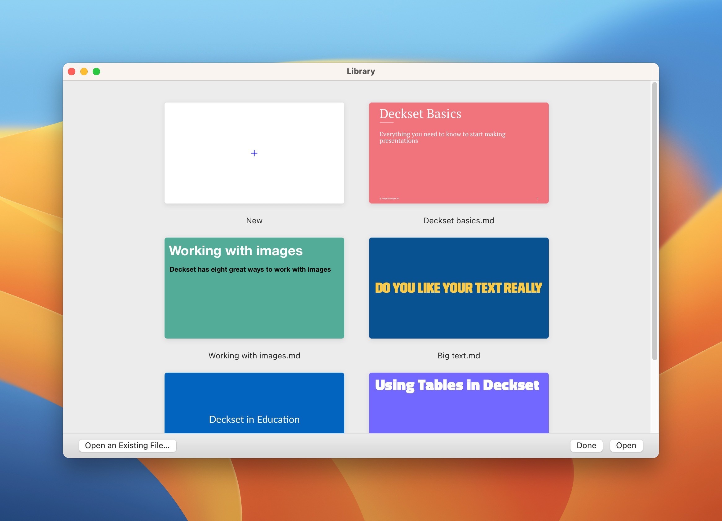 Deckset是一种新的简单方式来创建演示文稿。只需打开您喜欢的文本编辑器,记录下您的想法,Deckset就可以将它们转化为美观的演示文稿。您可以专注于您的想法,而不是设计幻灯片。Deckset提供了十种精美的主题,无论是商务会议还是技术会议,都可以满足各种观众的需求。