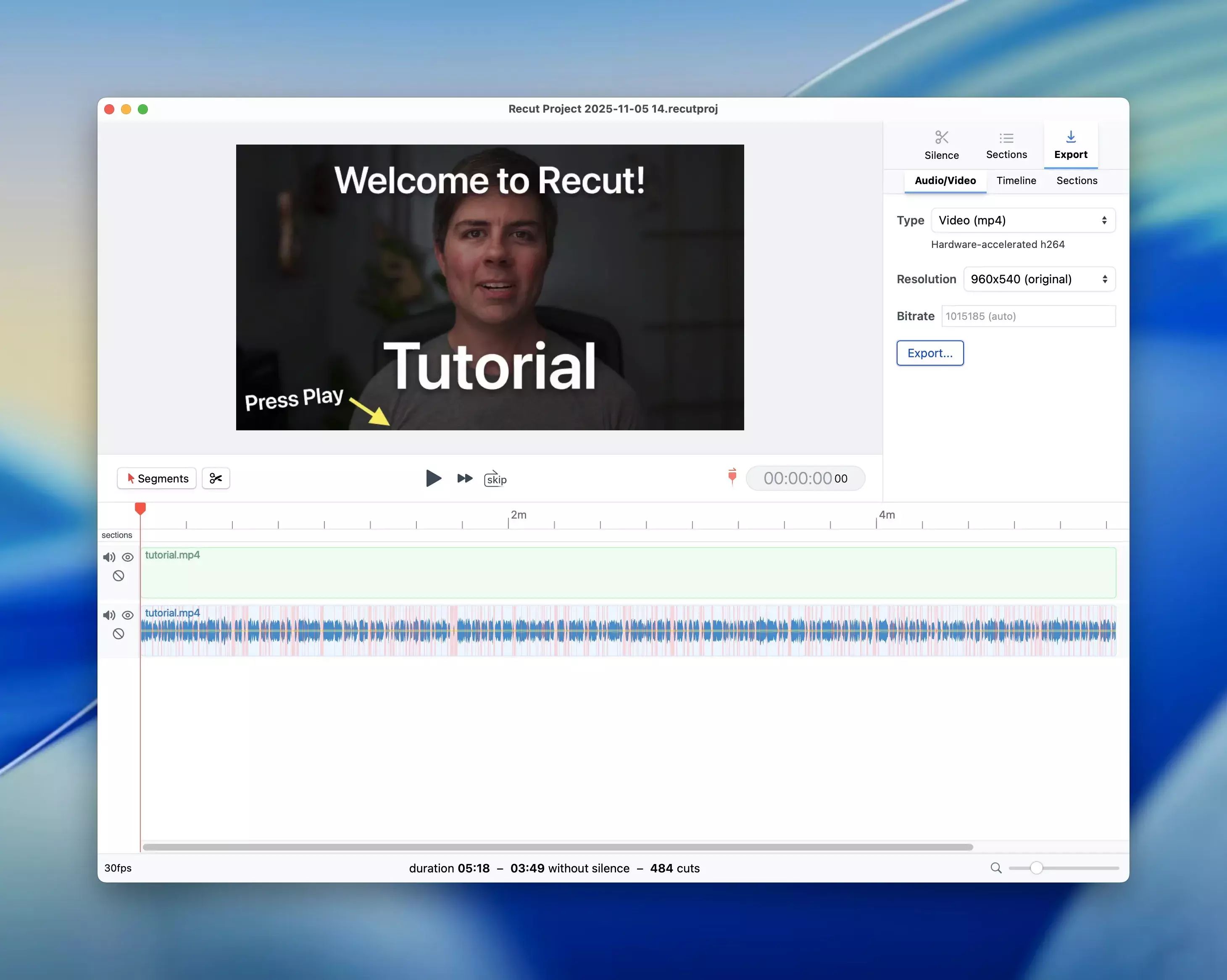 - 自动跳切功能: Recut 能自动去除视频中所有静默的部分,大大减少了编辑所需的时间和精力。