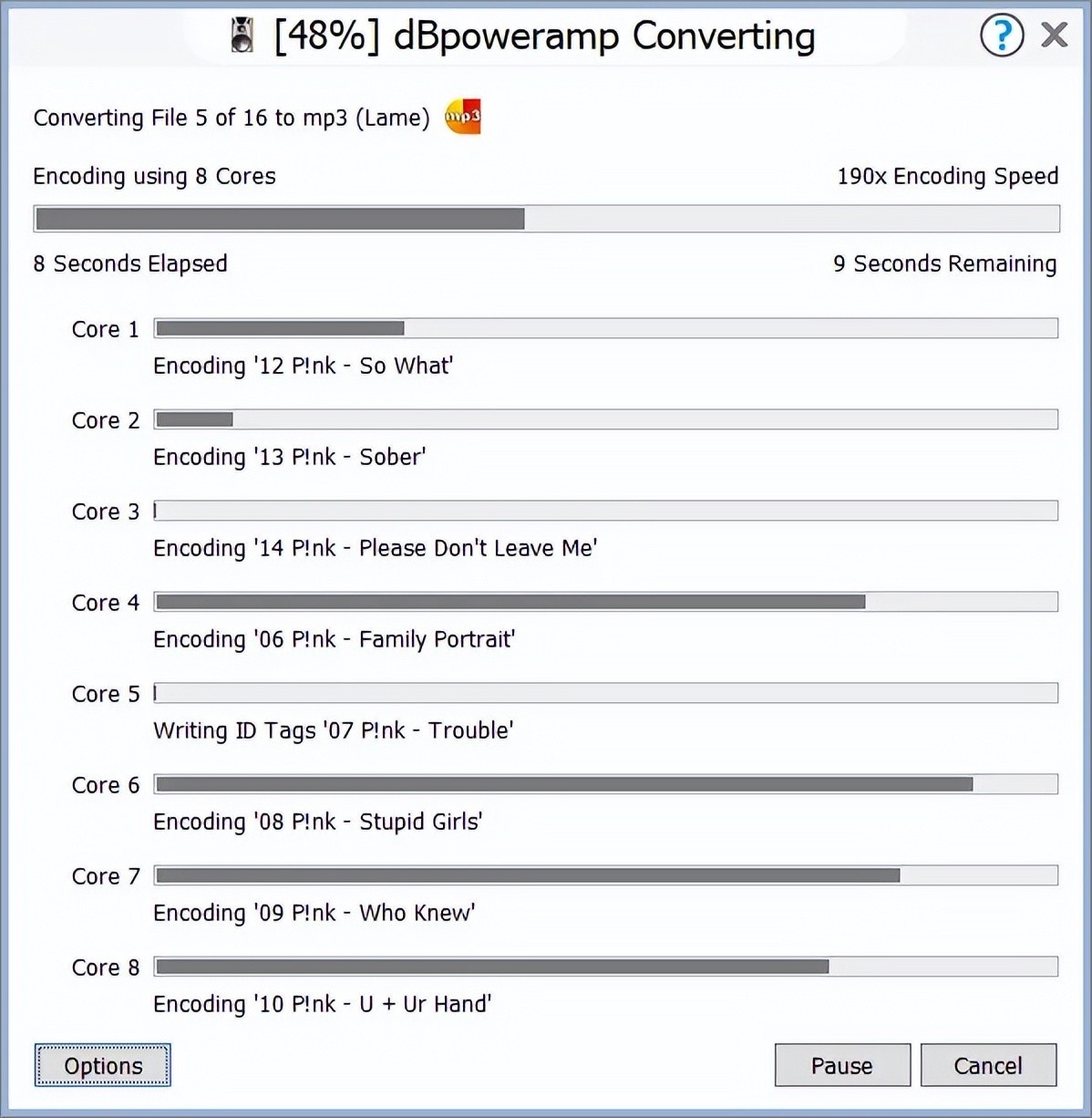 通过多年的努力,dBpoweramp 在多格式音频文件转换的兼容性和稳定性上已达到行业领先水平,用户可以轻松将 FLAC 转换为 MP3、WMA 转换为 MP3 或 WAV 转换为 MP3。