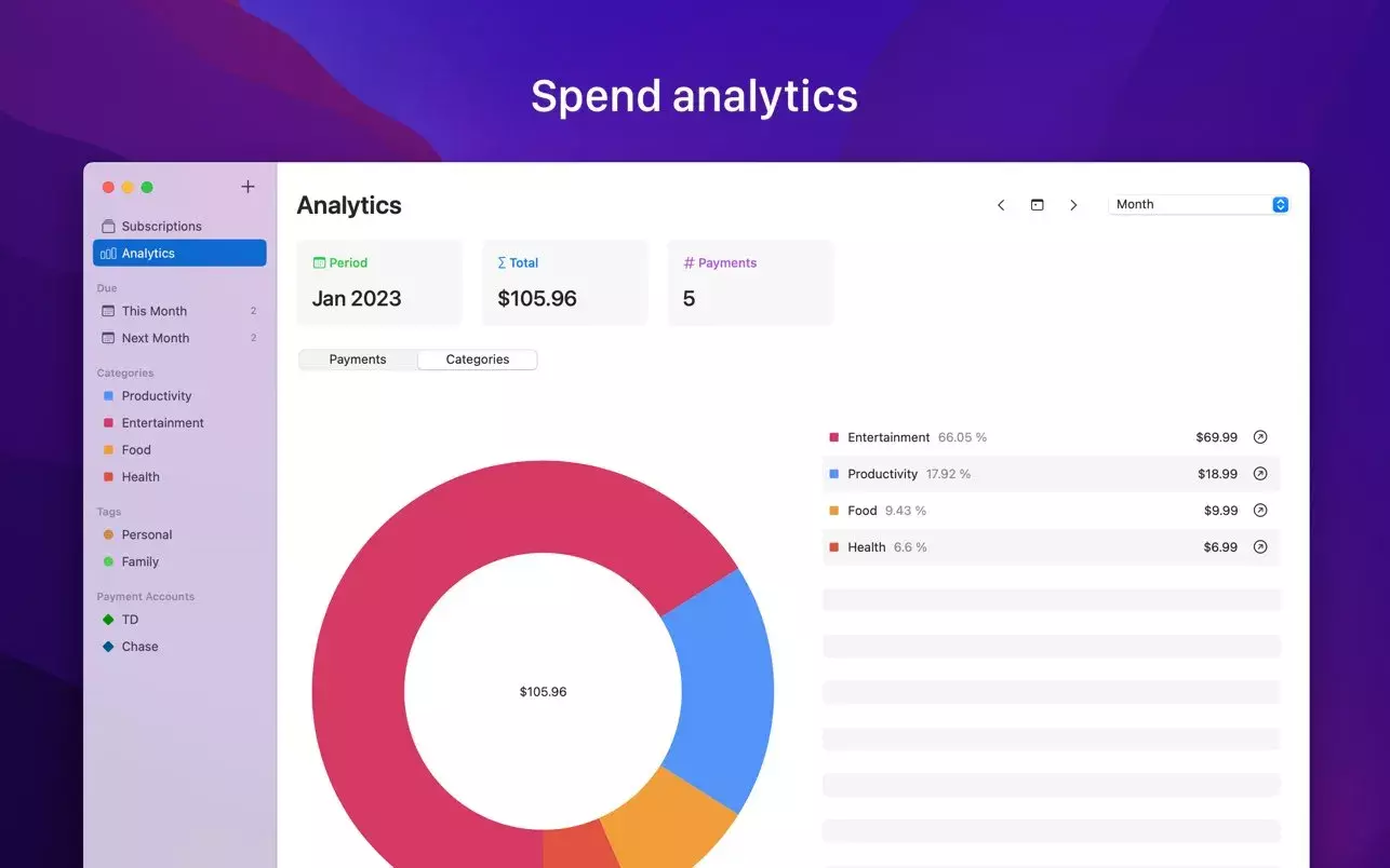 Subscriptions 是一款原生 SwiftUI 应用,能够无缝运行于 iPhone、iPad 和 macOS。该应用具有精美的界面,遵循 Apple 的设计原则,并提供丰富的自定义功能,用户可以轻松跟踪和管理自己的订阅。