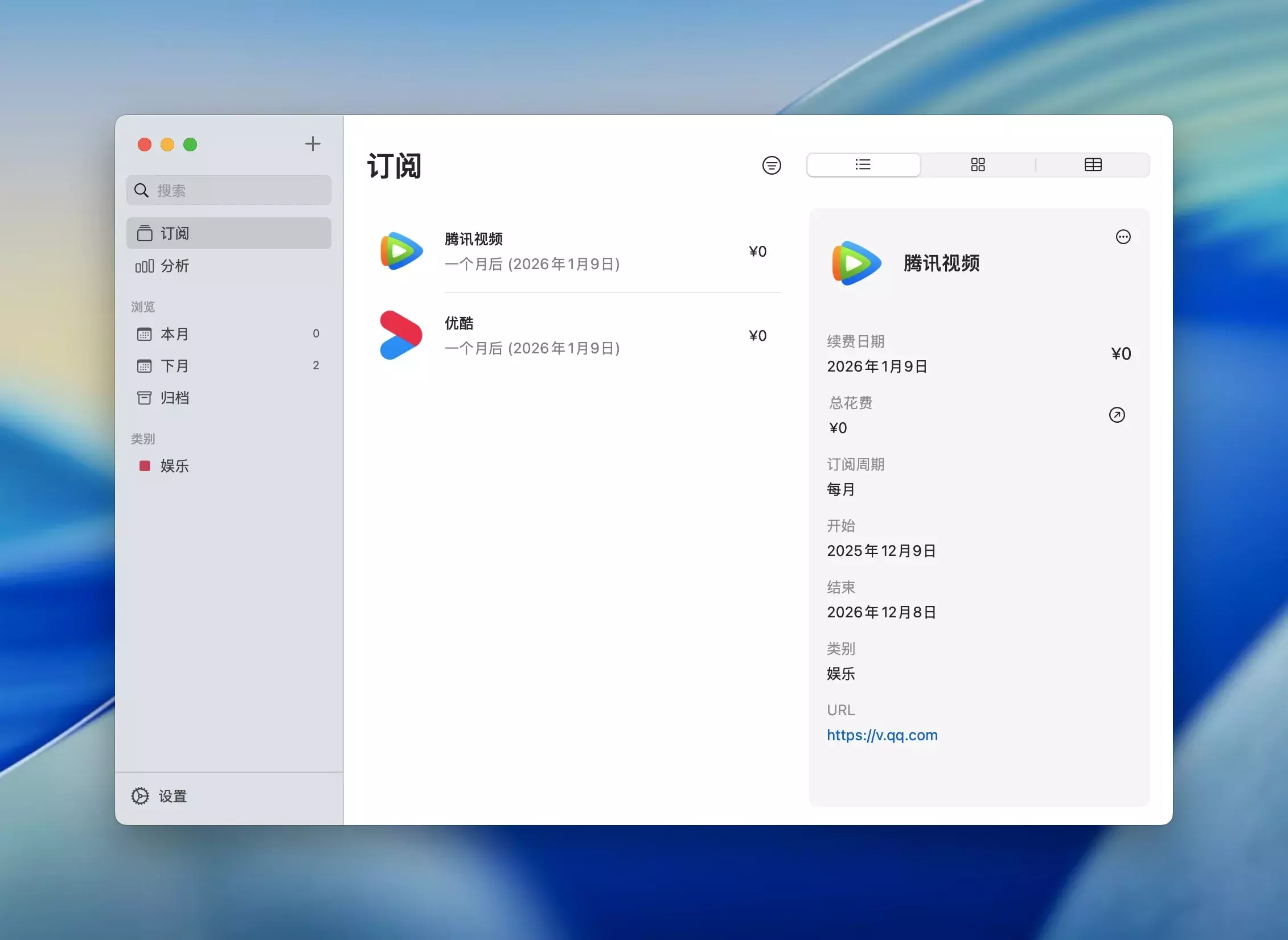 Subscriptions订阅通 破解版 - 管理订阅与订阅跟踪应用