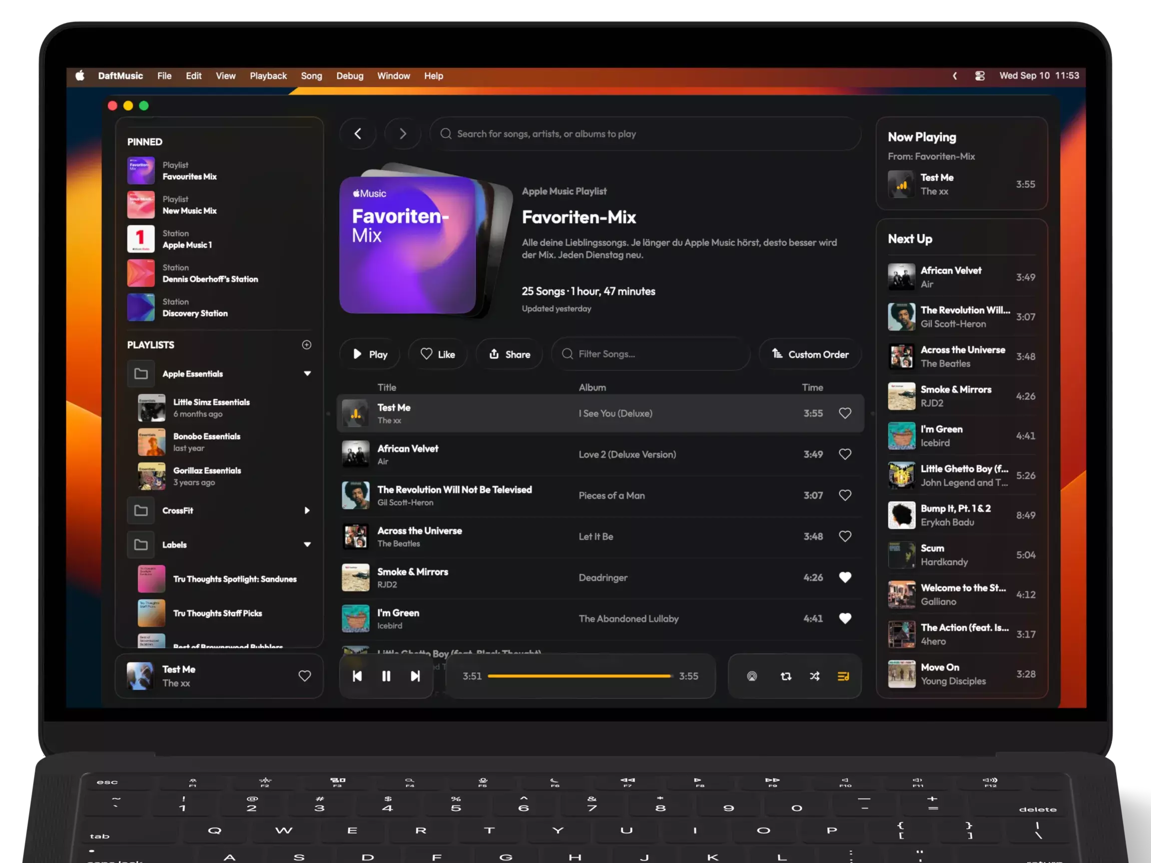 - 原生 macOS 性能: Daft Music 为 macOS 原生构建,提供闪电般的播放速度和流畅的导航体验。