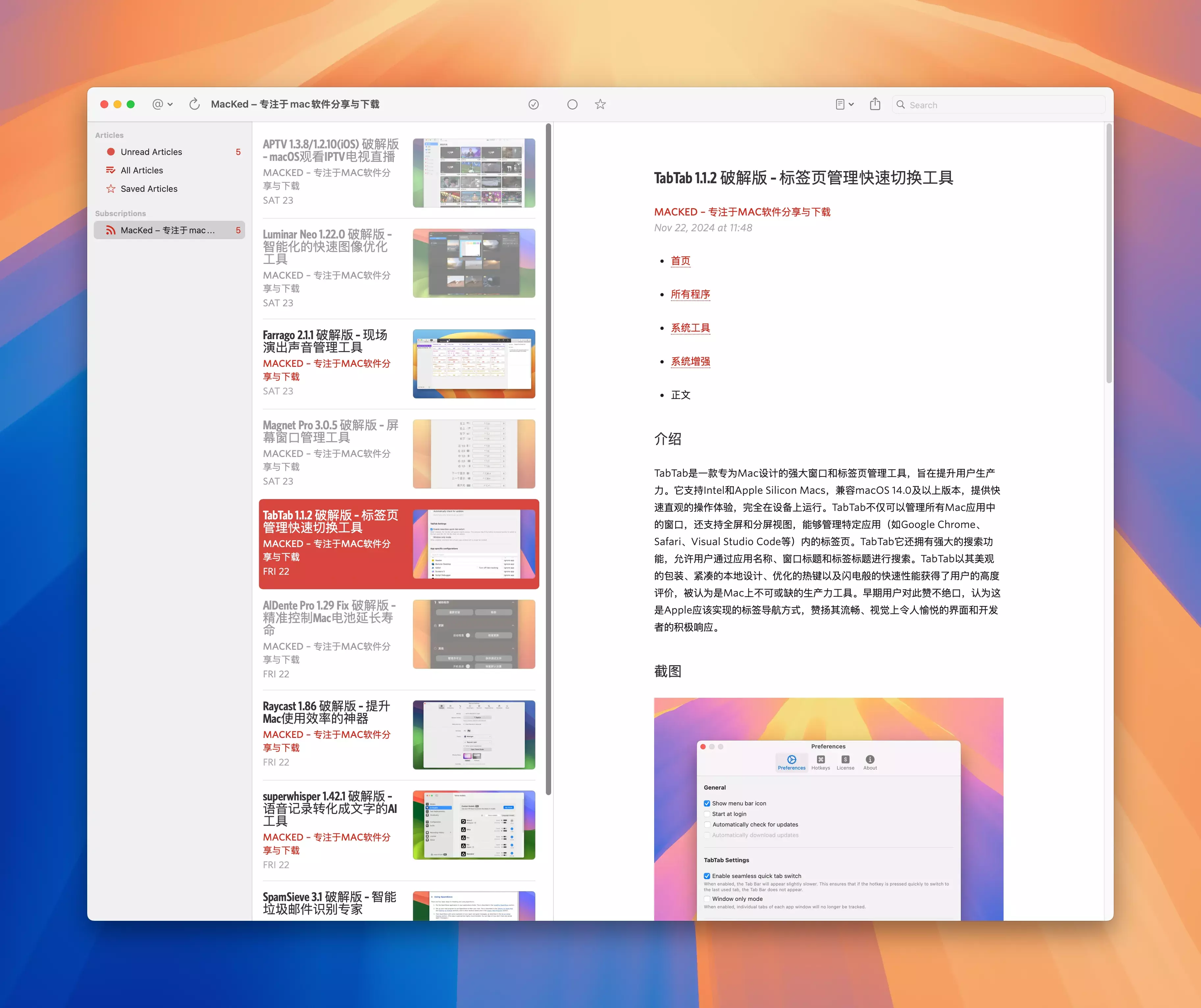 Unread for Mac 破解版 - Reeder替代/RSS订阅工具