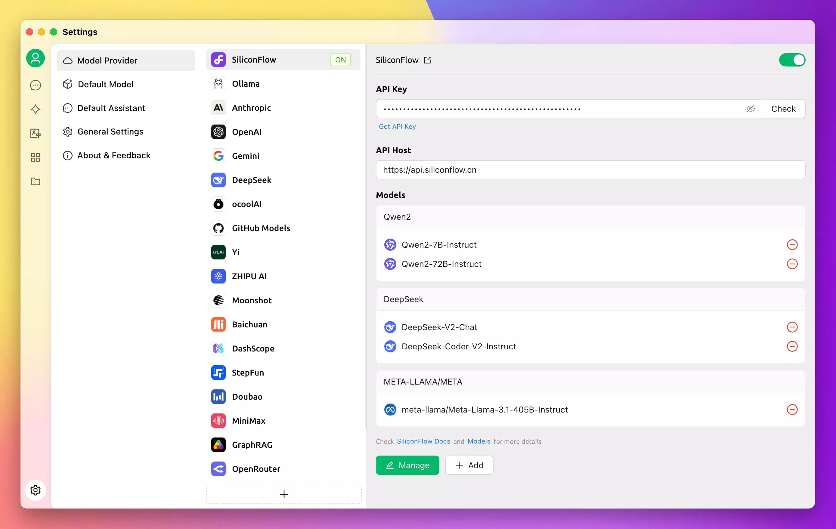 - 支持主流 LLM 云服务:OpenAI、Gemini、Anthropic、硅基流动等