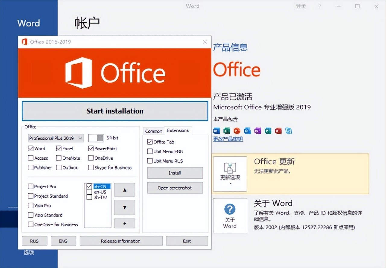 微软Office2016-2019x64(直装破解版) v16.0.12527.22286 01月更新版