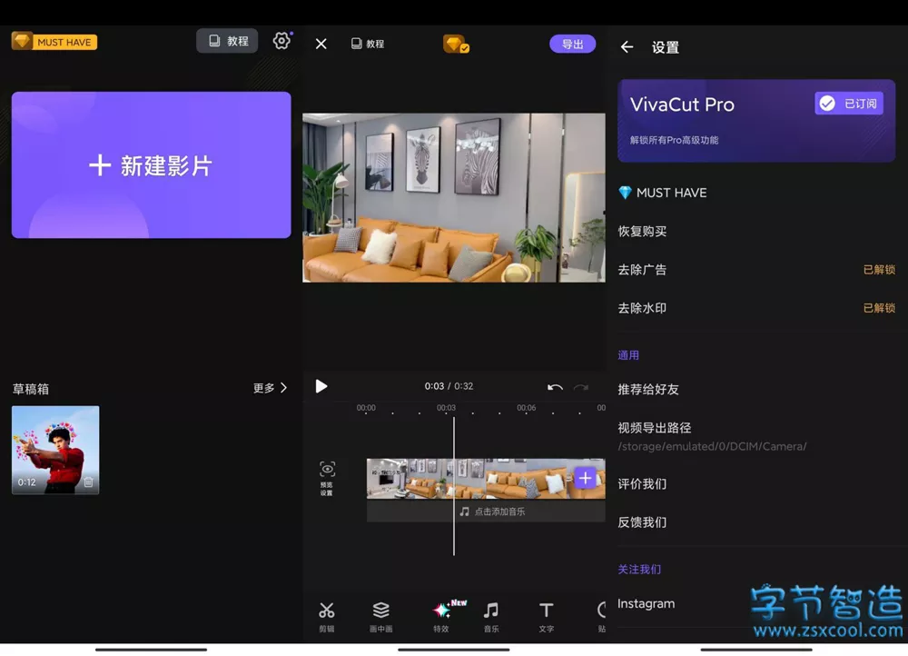 VivaCut v2.5.8 已经解锁高级版,去除视频水印功能无限制使用。