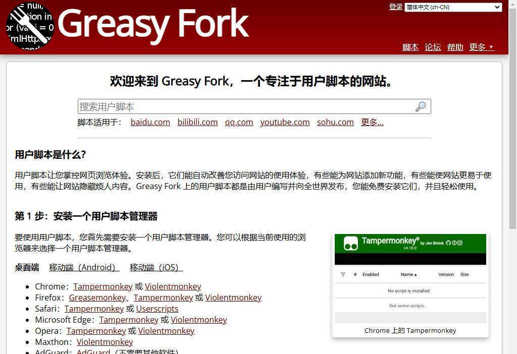 一键访问:GreasyFork油猴官网入口:https://greasyfork.org/