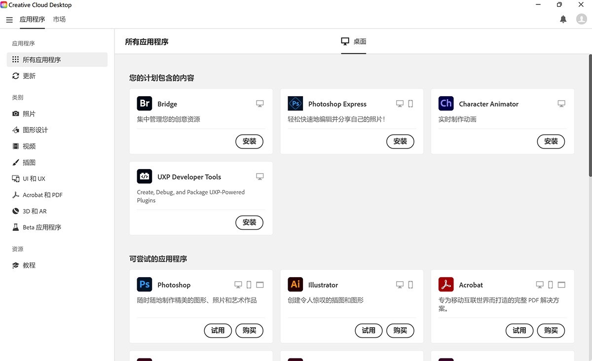 Adobe创意云桌面应用是Adobe Creative Cloud中的核心工具,集合了众多Adobe创意软件的功能和服务。用户可以通过该应用快速访问和管理各种Adobe专业创意工具,包括Photoshop、Illustrator、Premiere Pro等,以及其他云服务和资源。在Adobe创意云桌面应用中,用户可以轻松查看和更新各种Adobe软件,管理许可证和订阅信息,以及快速安装和启动所需的创意工具。这为用户提供了便利的方式来管理其创意软件的使用,并保持其软件始终更新到最新版本。