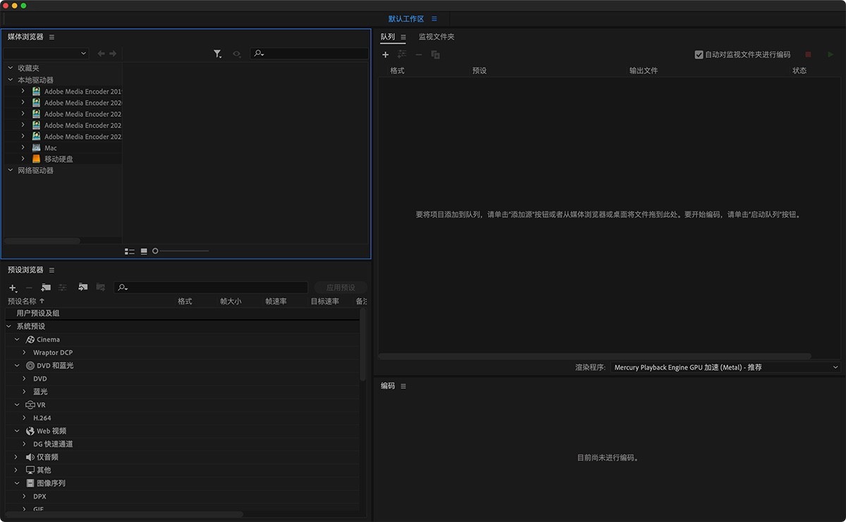 Ado be Media Encoder是一个专业的音频和视频编码渲染工具,可以导出各种设备格式的音频和视频。它提供了丰富的硬件设备编码格式设置和专业的设计预设,方便用户导出文件兼容特定的传输媒体。这个强大的媒体管理工具允许您以统一的方式跨应用程序使用媒体。与 Ado be Premiere Pro、After Effects和其他应用程序的紧密集成提供了无缝的工作流。
