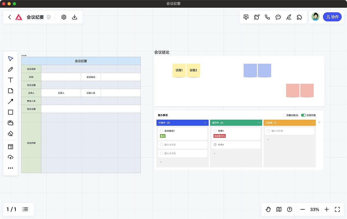 小画桌 for Mac 是一款功能强大的在线协同办公软件。用户可以通过小画桌 for Mac 实现实时的团队协作和文件共享,无论团队成员身在何处,都能够快速便捷地共同编辑文档、制作表格、创建图表等,实现高效的协同办公。除了文件共享和团队协作功能,小画桌 for Mac 还提供了丰富多样的创意工具和模板,让用户可以轻松设计出各种精美的图示、海报、宣传册等,帮助用户呈现信息和展示作品。同时,软件支持实时评论和反馈功能,团队成员可以即时交流意见、提出建议,促进工作的高效推进和优化。