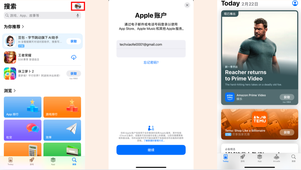 我们的美区Apple账户现在呢已经注册好了,可以去苹果应用商店App Store下载免费App了,美区的App Store跟大陆的最大区别就是下面的菜单栏多了一个Arcade也就是订阅游戏的。