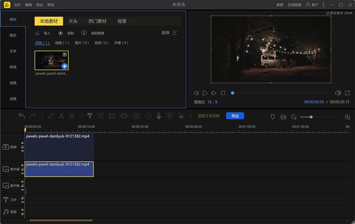 如果你想添加一些图片或图片中的图片效果到这个视频的框架,蜜蜂剪辑可以帮助你!除了原始的视频轨道外,还可以自动打开一个额外的轨道,这样就可以把素材拖进去编辑了,从而丰富了视频层!您还可以同时编辑字幕和背景音乐,实时查看视频的整体效果。