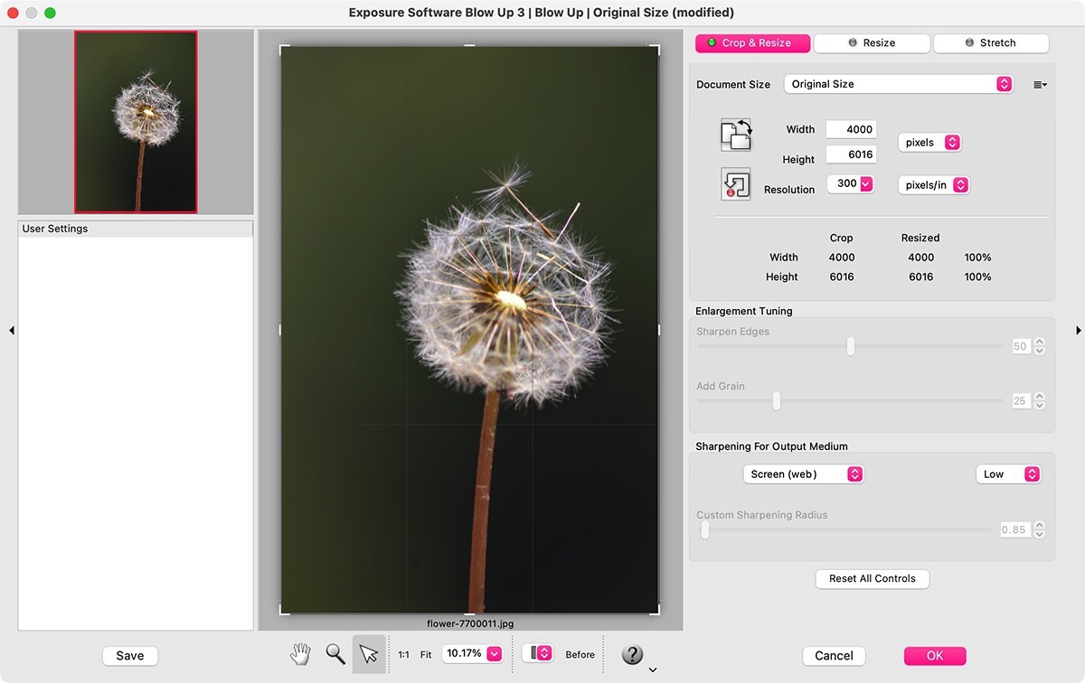 Blow Up可以进行处理传统胶印中使用的 CMYK图像和专业需要摄影师通过使用的16位/通道以及图像。