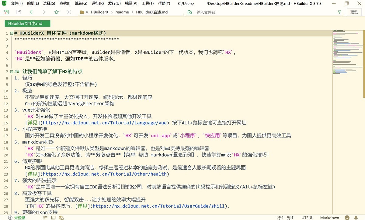 HBuilder X是专为前端设计的多功能Web开发工具。它是代码编辑器和IDE的完美结合。它支持HTML、CSS、JS和PHP的快速开发。默认情况下,它包含优秀的字处理功能,并创新了许多其他编辑器不具备的高效字处理模型。HBuilderX独特的UniApp开发插件和Rapid Application开发插件也可以帮助开发人员快速开发移动应用程序。HbuilderX具有飞行编码的特点,最完整的语法库和兼容浏览器的数据,方便的移动APP制作,最绿色和软的护眼设计。