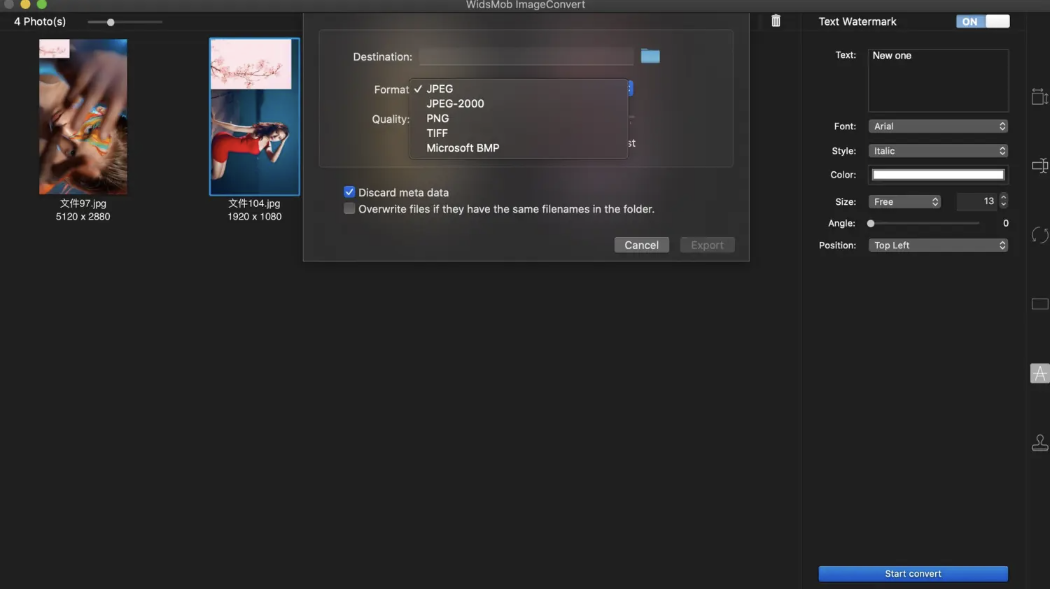 不仅添加字幕和图像作为水印,而且还允许您批量调整字体,样式,颜色,不透明度,大小,角度,位置等。您可以立即预览在所有照片上应用的效果,以获得最佳效果。