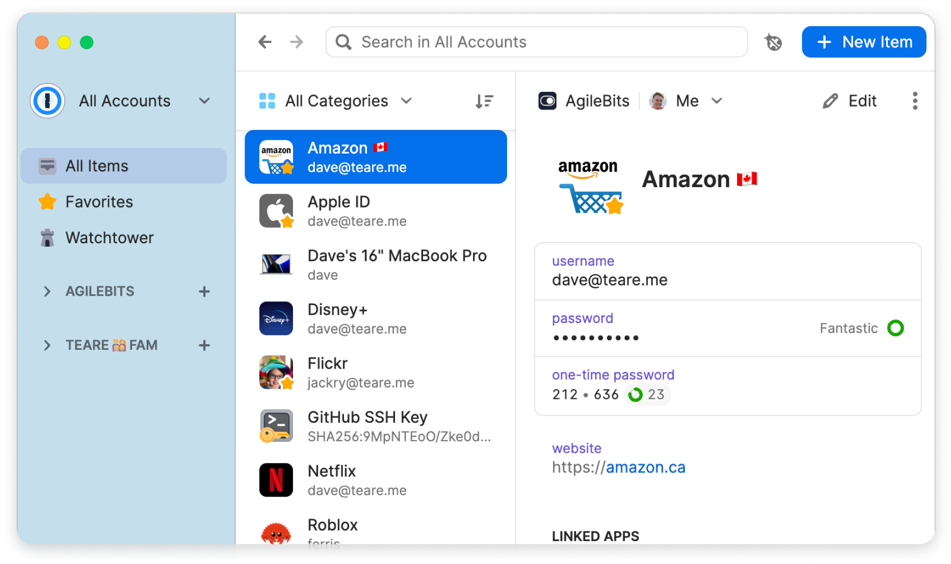 安全且易于制作 所有密码都存储在1Password中,可以在需要时自动填写。 这是保护您免受密码重复使用、数据泄露和 PML(密码记忆丢失)的最简单方法。