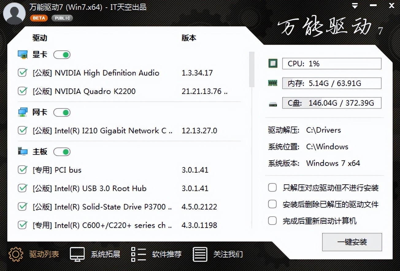 万能驱动(EasyDrv)是一个IT 天空的产品,用于智能识别计算机硬件和自动安装驱动程序。它有一个简单和友好的用户界面,非常容易使用。对“一切”的追求是一种表达我们想要让产品完美的态度。我们也希望每个人都能与我们一起工作,让他们不断改进,让每个人都能感受到驱动器和安装的“全面”。