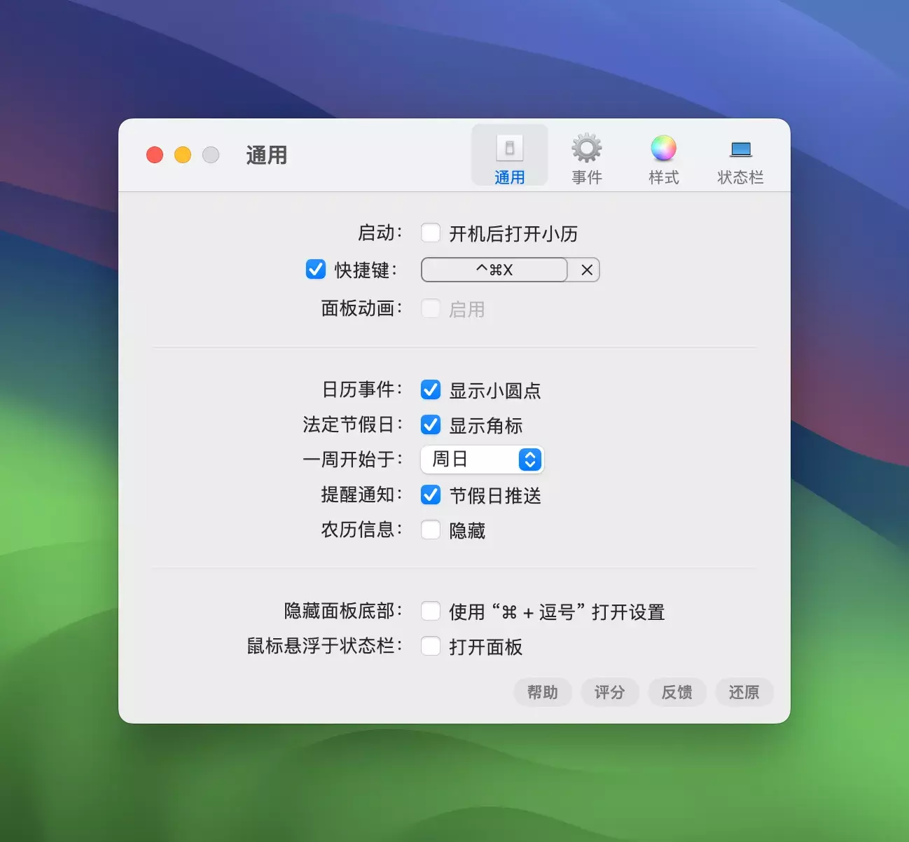 小历是一款简洁易用的Mac日历应用程序,它提供了丰富的功能帮助用户轻松管理时间安排。首先,小历集成了日历、提醒事项和待办事项功能,用户可以在同一个界面上方便地查看日程安排和待办事项,从而更好地规划时间。其次,小历支持快速添加日程和提醒事项,用户只需简单的操作即可快速记录重要的事件和任务,让时间安排更加高效。此外,小历还提供了灵活的提醒设置,用户可以根据需要设置各种提醒方式和时间,确保不错过任何重要事项。总的来说,小历是一款功能丰富、操作简便的Mac日历应用,能够帮助用户更好地管理时间、安排日程,提高工作效率。小历是 iOS & macOS 平台上面小而美的日历,iOS 上面通过 Widgets 让用户查看日历十分便捷,希望能通过简洁的设计带给用户最方便的体验。