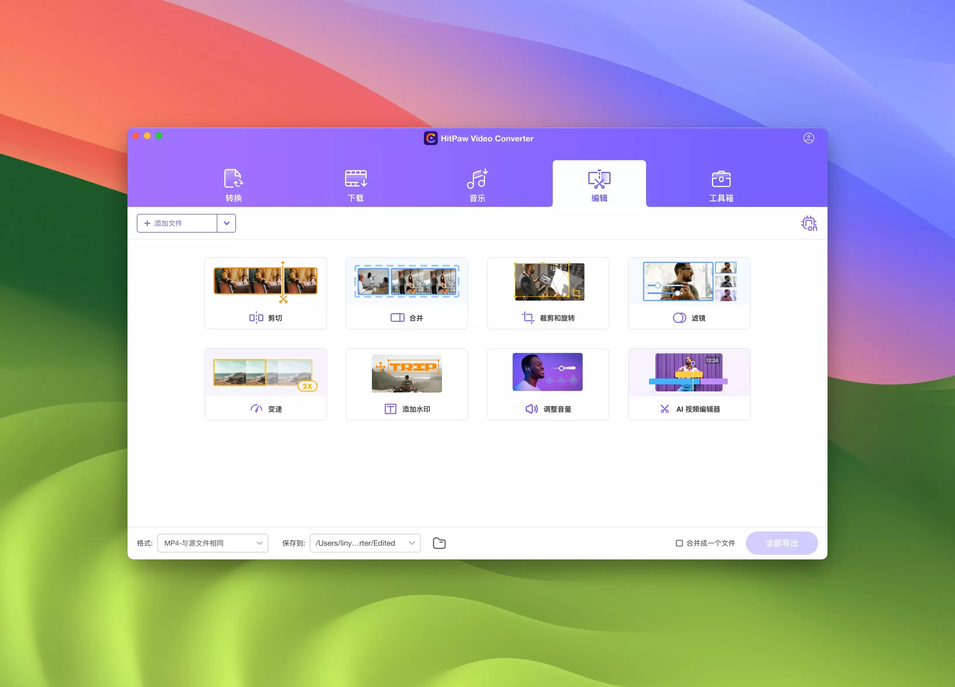 HitPaw Video Converter for Mac是一款功能强大的视频转换工具,能够帮助用户快速、轻松地转换视频格式。该软件支持多种常见视频格式,包括MP4、AVI、MOV、WMV等,同时也支持高清视频和4K视频的转换。用户可以通过简单的操作,将视频格式转换为适合不同设备和平台播放的格式,如iPhone、iPad、Android手机等。除了视频格式转换外,HitPaw Video Converter还提供了视频剪辑和合并功能,用户可以裁剪视频、调整视频大小、添加水印等操作,以满足个性化的需求。此外,软件还支持批量转换,节省用户的时间和精力。除了视频格式转换和视频剪辑功能,HitPaw Video Converter for Mac还具备视频压缩功能。用户可以通过该功能,将大型视频文件压缩为更小的尺寸,以节省存储空间和便于分享。软件界面简洁直观,操作简单易懂,即使是初学者也能轻松上手。同时,软件还提供了快速转换和高质量转换两种模式,用户可以根据自己的需求选择合适的转换模式。总之,HitPaw Video Converter for Mac是一款功能全面的视频处理工具,为用户提供了便捷、高效的视频转换和编辑体验。