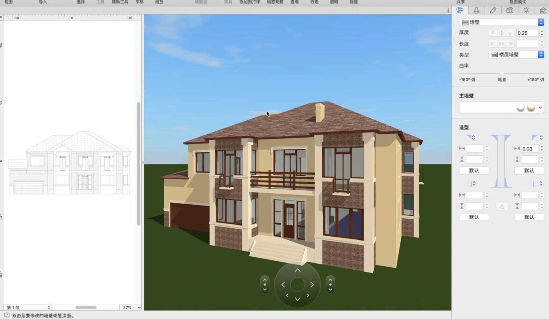 - 跟踪导入的平面图或使用笔直墙壁、弧形墙壁或房间工具从头绘制您自己的房屋平面图。