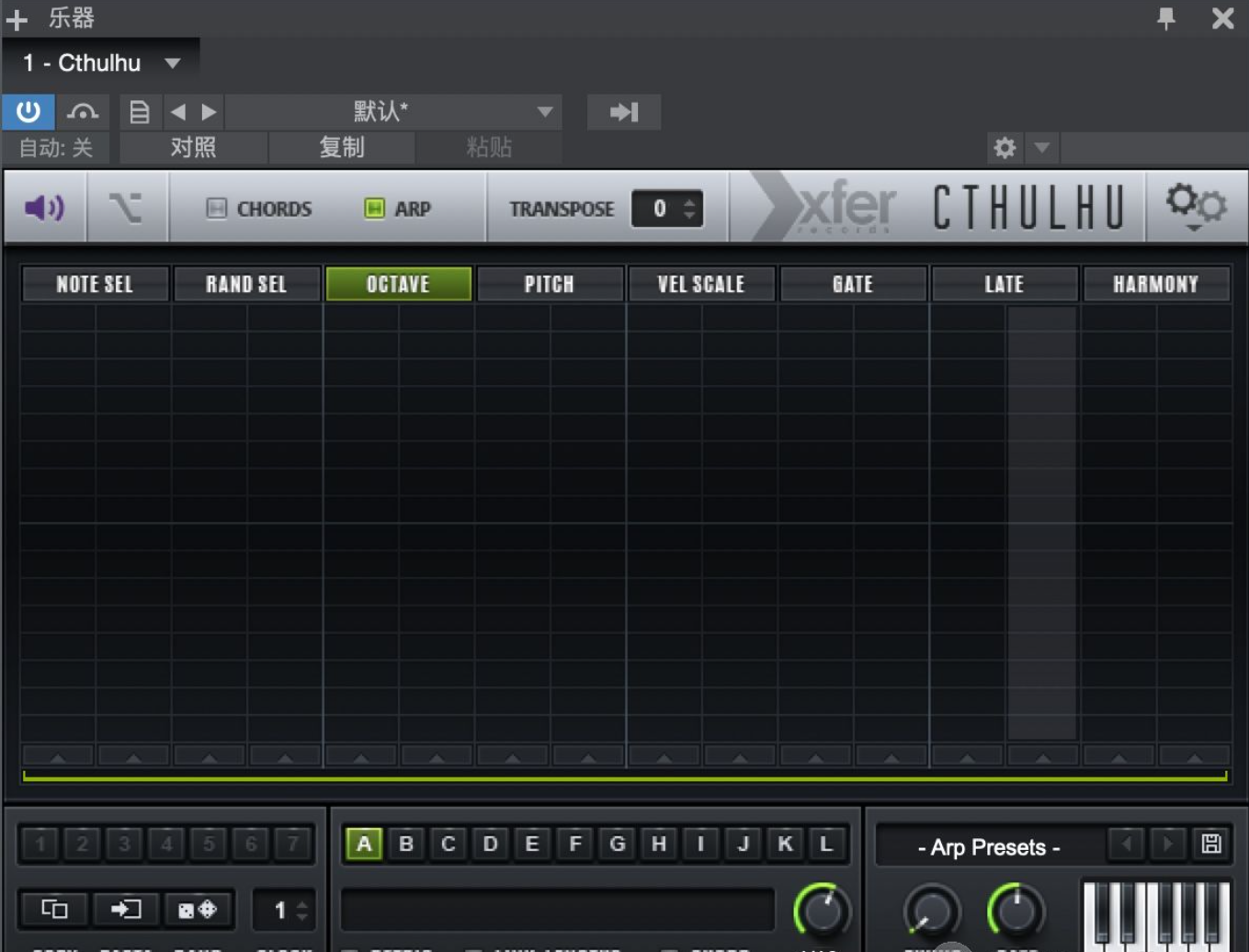 总之,Xfer Records Cthulhu是一款简单易用的MIDI和和弦工具,适用于各种音乐类型的制作。它包含了丰富的和弦库、可编程的琶音器、随机化功能和灵活的MIDI输出选项等特性,可以帮助音乐人快速创建复杂的和弦进度和旋律,并提高创作效率。