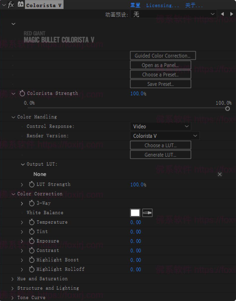 Colorista:用于三通道(RGB)颜色校正、曲线调整、阴影和高光的控制等。它提供了全面的控制面板和直观的界面,并支持外部控制面板,如 Tangent Wave 和 Element-TK。