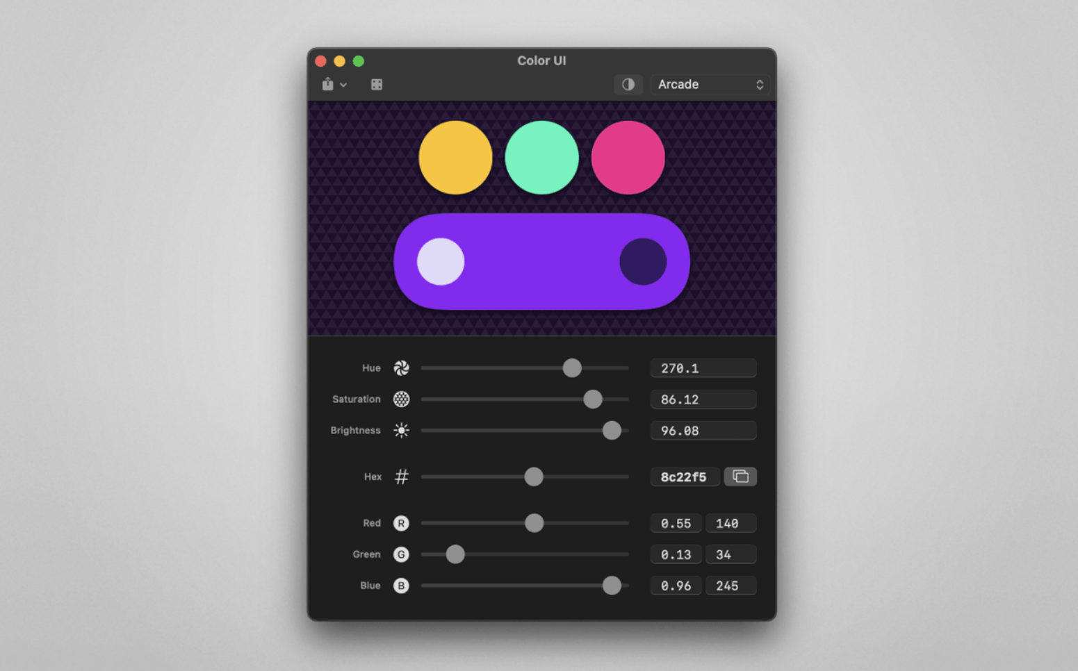 Color UI 是一款 Mac 上的颜色管理软件,它可以帮助用户管理和组织颜色,并生成对应的代码,方便开发人员在项目中使用这些颜色。该应用程序提供了丰富的调色板,并支持用户自定义颜色和调色板,同时还能将颜色导出成为各种格式的代码,如 CSS、Swift 和 Objective-C 等。
