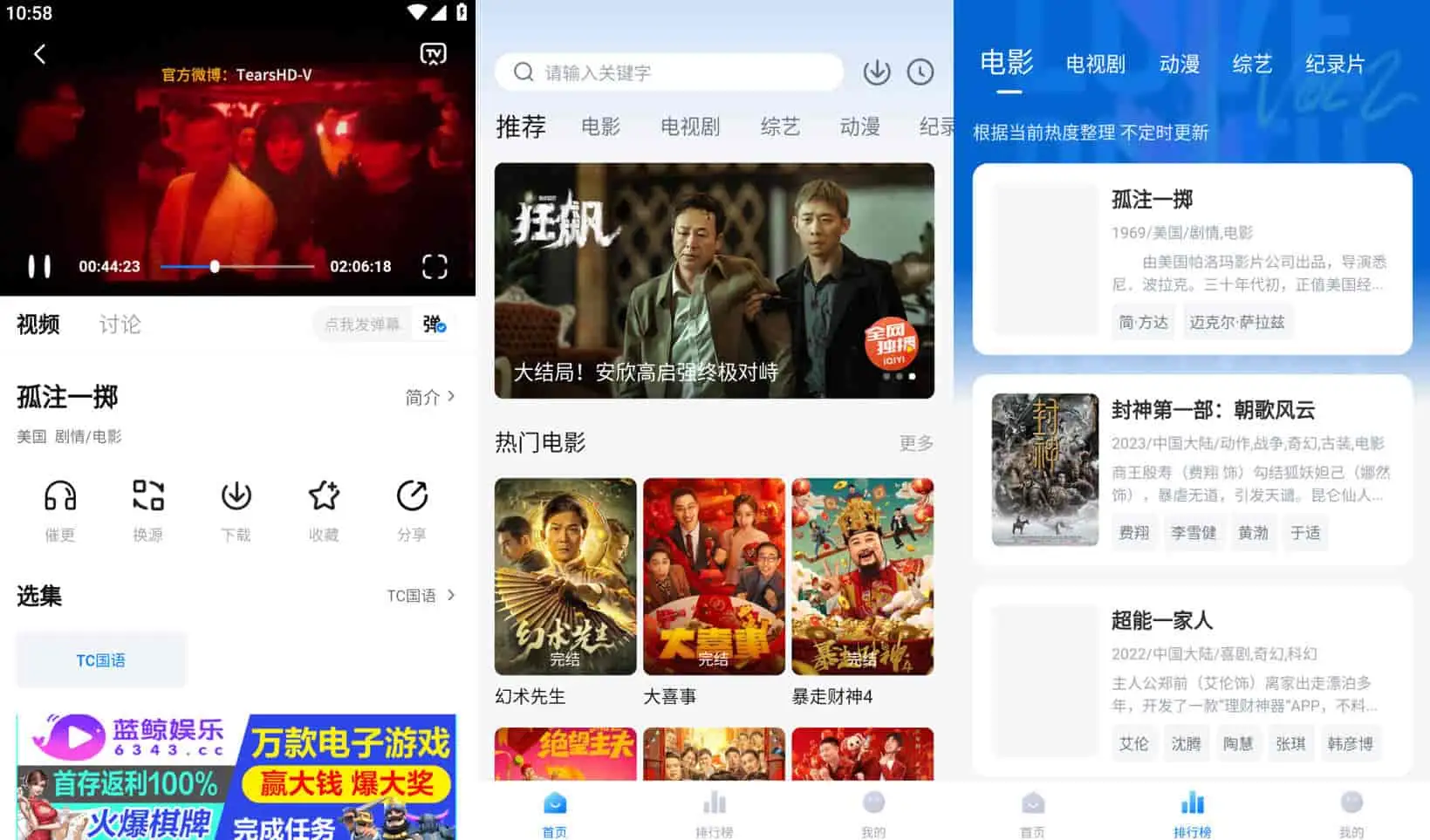 总之,蓝光影院是一款提供在线观看影视内容的手机应用软件,用户可以在其中畅享各种类型的电影、电视剧、综艺等影视内容,同时还提供了便捷的播放界面和功能,以及社交互动的体验,是一款非常适合喜欢观看影视内容的用户使用的应用软件。