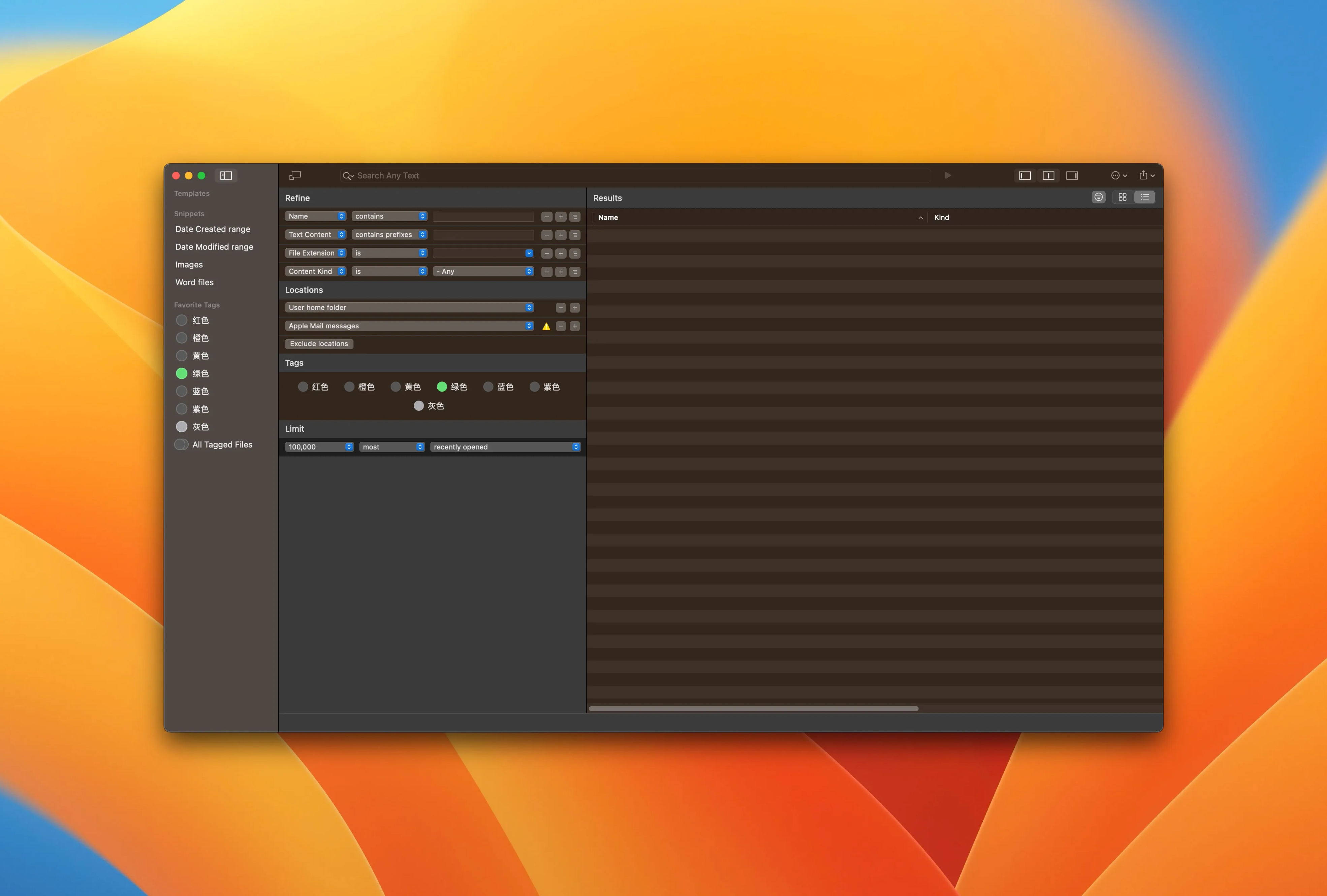 - 按种类、日期、大小或应用程序对搜索结果进行分组。