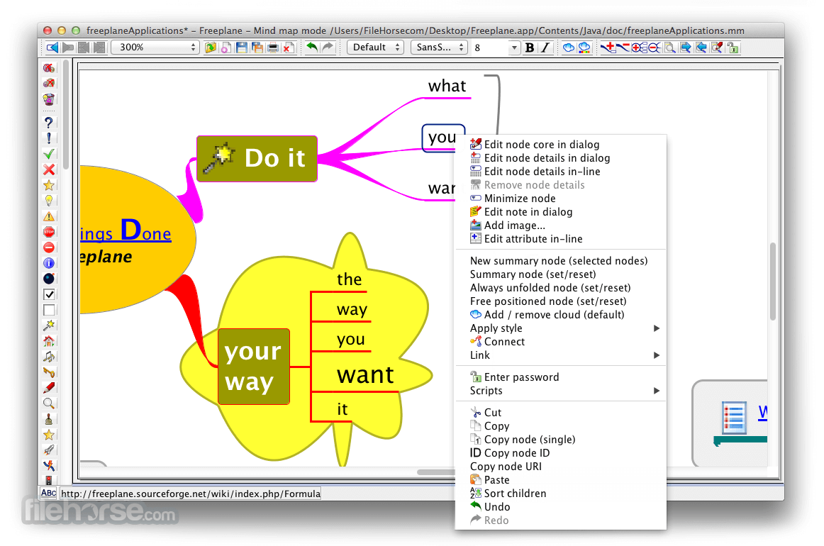 Freeplane是一个免费的开源软件应用程序,支持思考,共享信息,在工作,学校和家庭中完成工作。 它为您提供了一组用于思维导图(也称为概念图或信息图)和导航映射信息的工具。 Freeplane也是Xmind,Mindmeister和类似思维导图软件的更强大和超级用户的替代品。