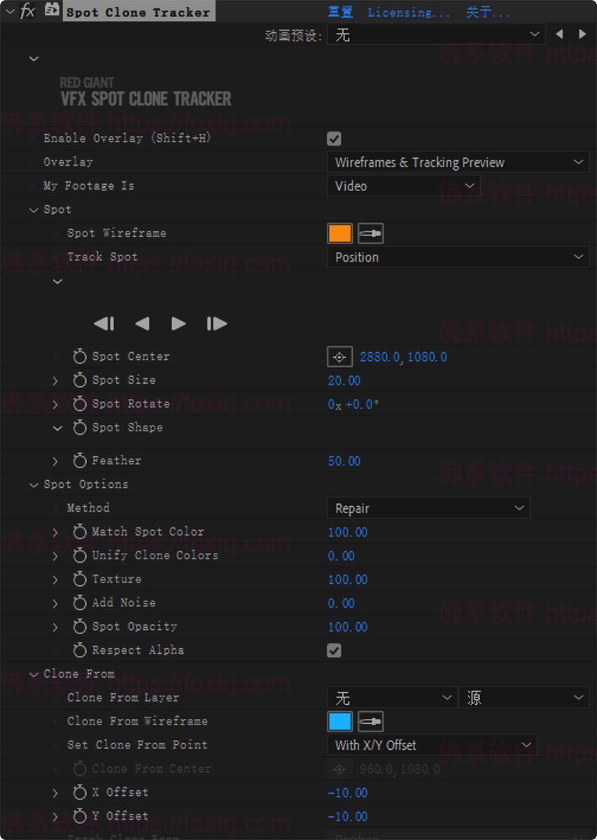Spot Clone Tracker:该插件是一款高级的修复工具,它可以帮助用户快速修复视频中的缺陷和瑕疵,并实现高质量的特效合成。