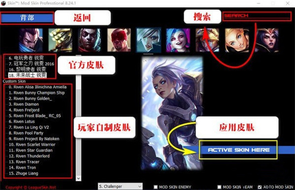 可以更换所有英雄的所有皮肤,包括各种限定皮肤和绝版皮肤!只需简单几步操作即一键更换,软件对英雄进行了详细的分类,也可以直接模糊搜索。