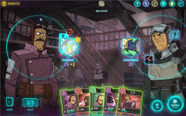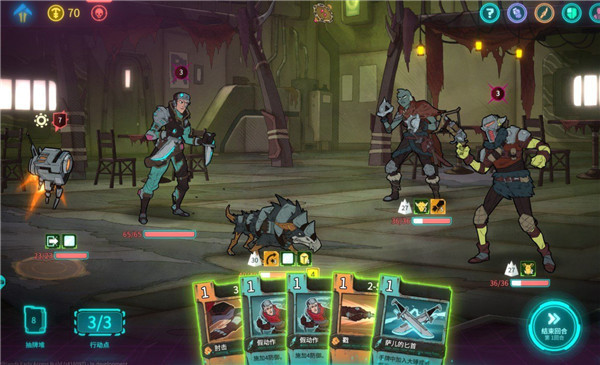 玩家每回合将从抽牌堆抽取5张牌,并使用行动点数出牌。