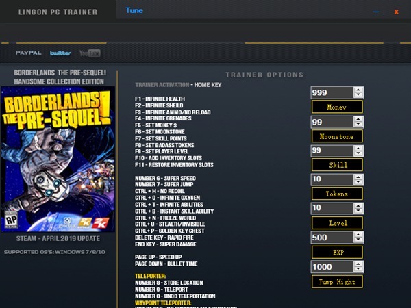 不但如此,除了这些变态的数据修改功能之外,你还可以设置金钱、月石、技能点、Badass代币、玩家等级等一系列数据,让自己的角色拥有各种变态的数值。不过最好是不要全部都开,不然玩起来也没意思,还有就是无主之地前传二十八项修改器风灵月影版如果一次性开多了功能,也有可能导致功能失效哦~